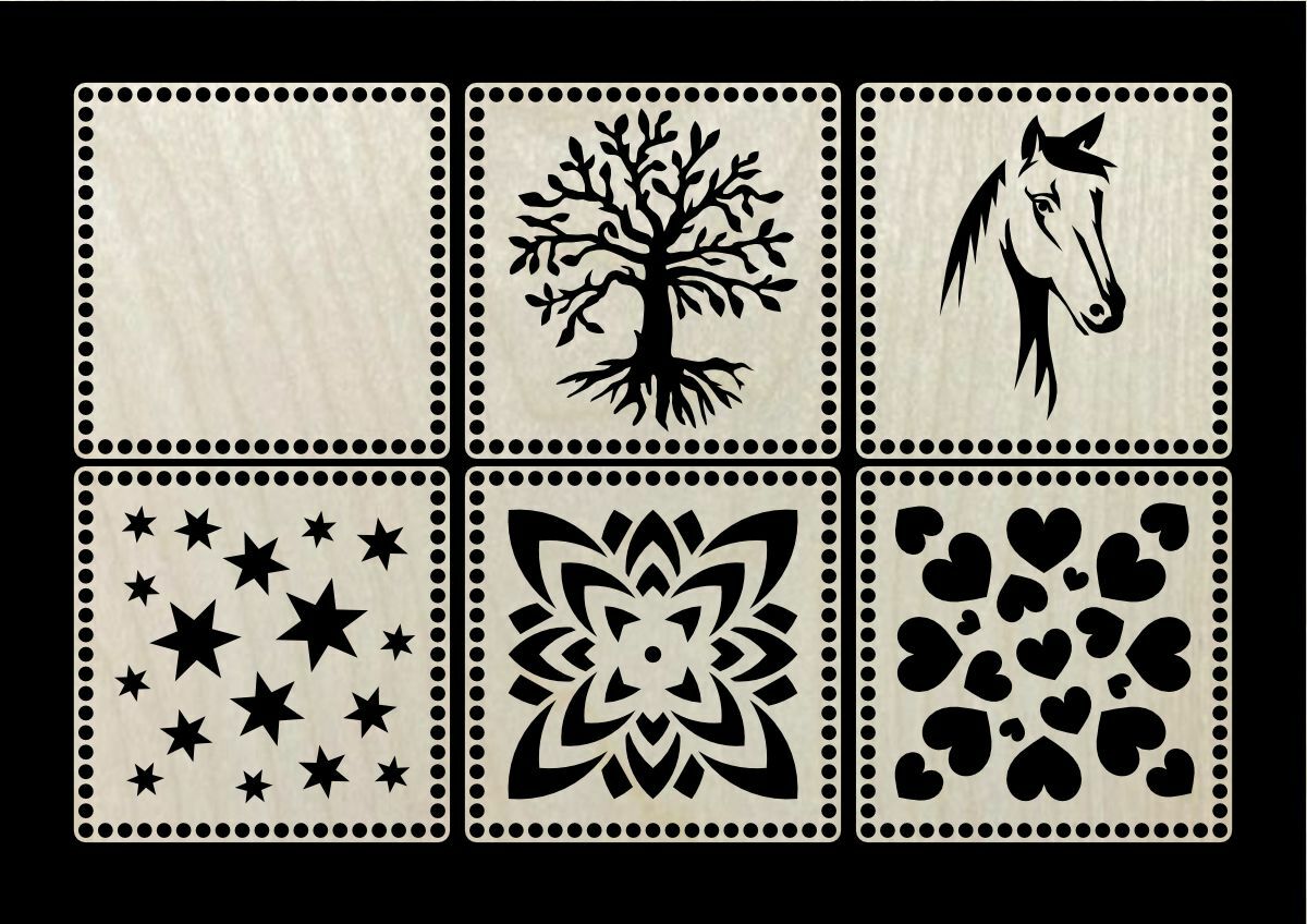 Vyřezáno laserem z překližky. Tloušťka materiálu je 3-4 mm.