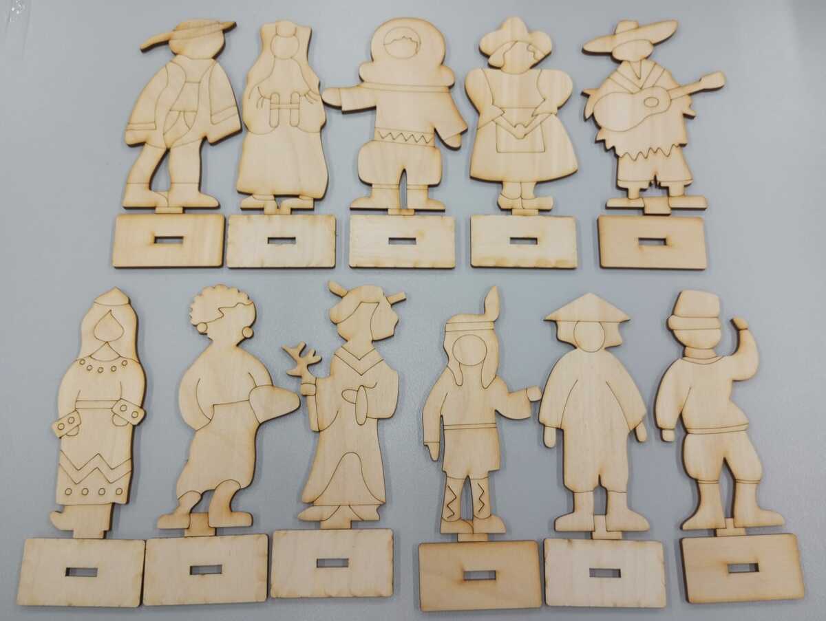 11 figurek světového společenství včetně podstavců. Figurky mají z přední strany vygravírované linky pro snadnější vymalování